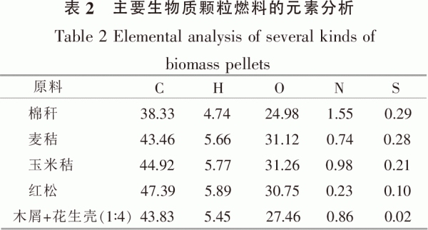 通過(guò)對(duì)傳熱系數(shù)、各項(xiàng)熱損失等熱工參數(shù)的監(jiān)測(cè)和計(jì)算,對(duì)排煙、氣體不完全燃燒、固體不完全燃燒等各項(xiàng)熱損失數(shù)據(jù)的分析,研究人員能夠判斷影響鍋爐熱效率的因素,發(fā)現(xiàn)鍋爐或燃燒器在結(jié)構(gòu)、燃燒方式、進(jìn)料、配風(fēng)、排煙及輔機(jī)配置等方面的問(wèn)題,有針對(duì)性地進(jìn)行改進(jìn),以消除鍋爐缺陷,提高熱效率。 2.2污染物排放監(jiān)測(cè)指標(biāo) 大氣污染物排放是衡量燃燒設(shè)備性能的重要指標(biāo)之一。生物質(zhì)燃料不完全燃燒會(huì)產(chǎn)生大量的CO,并伴有NONO2以及大量的煙塵,這些污染物排放到大氣中,會(huì)對(duì)空氣造成不良影響,損害人類(lèi)的健康。另一方面,大氣污染物排放量也是計(jì)算氣體不完全燃燒熱損失的重要參量,是燃燒設(shè)備的燃燒效率的決定因素之一。監(jiān)控燃燒設(shè)備的煙氣、煙塵排放,可以確定生物質(zhì)燃料的燃燒狀況,然后可以對(duì)控制參數(shù)進(jìn)行調(diào)整。 生物質(zhì)固體成型燃料燃燒設(shè)備的煙氣種類(lèi)和排放量由生物質(zhì)固體成型燃料的元素含量和燃燒工況決定。盡管成型燃料種類(lèi)繁多,但生物質(zhì)燃料元素還是以C,H,O為主,如表2所示[20],并有少量的N,S,但是N,S含量跟煤等燃料相比,幾乎可以忽略不計(jì),排放煙氣中主要包括CO2,CO及較少的SO2,NOx,這正是生物質(zhì)燃料的優(yōu)點(diǎn)之一,在環(huán)境保護(hù)上有很重要的意義。