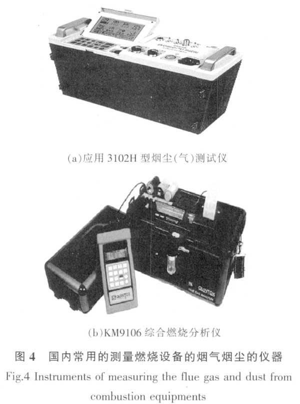 圖3是芬蘭某實(shí)驗(yàn)室的燃燒設(shè)備排放氣體的采集控制系統(tǒng)[29]。 燃燒器的進(jìn)料系統(tǒng)由一個(gè)連接在燃燒器控制系統(tǒng)上的完全自動(dòng)進(jìn)料控制器控制。設(shè)置較完善的燃燒控制器保證了不同的燃料在相同的狀態(tài)下燃燒。在排放管道中,放置多個(gè)不同的氣體化學(xué)傳感器,并安置多個(gè)微粒取樣器,各個(gè)裝置分別由電腦終端控制,采集處理數(shù)據(jù)高效且準(zhǔn)確,保證了氣體采集的連續(xù)性和精確性以及控制器的最優(yōu)性能和效率。 3.2國(guó)內(nèi)情況 國(guó)內(nèi)針對(duì)生物質(zhì)固體成型燃料燃燒設(shè)備的燃燒效果的測(cè)控系統(tǒng)還未見(jiàn)諸報(bào)道?,F(xiàn)有的分析結(jié)果多是由單一儀器測(cè)量所得。進(jìn)行一次參數(shù)測(cè)量通常會(huì)用到煙塵(氣)測(cè)試儀、綜合燃燒分析儀、數(shù)字熱電偶溫度計(jì)、水銀溫度計(jì)、壓力計(jì)、米尺、秒表等。測(cè)量的獨(dú)立,采集點(diǎn)的不同,不能保證連續(xù)性;不同儀器的靈敏度不同,也不能保證測(cè)量數(shù)據(jù)的精確性。而且采集完數(shù)據(jù)還需另行計(jì)算所需參數(shù),以獲得熱工特性等結(jié)果。 圖4展示了國(guó)內(nèi)常用的煙氣煙塵測(cè)量?jī)x器。其中:(a)應(yīng)用3102H型煙塵(氣)測(cè)試儀[30]主要用來(lái)測(cè)量煙塵排放量,每次抽樣2~5min,需要人工裝卸抽樣管和過(guò)濾紙桶,采集后的數(shù)據(jù)也需要人工測(cè)量,費(fèi)時(shí)費(fèi)力;(b)為英國(guó)產(chǎn)煙氣測(cè)量?jī)x[31],可對(duì)煙氣中的CO2,CO,SO2,NOx進(jìn)行分別測(cè)量監(jiān)控,并間隔固定時(shí)間記錄,該儀器只需在開(kāi)始和結(jié)束的時(shí)候安裝抽樣管即可,無(wú)需其他操作。