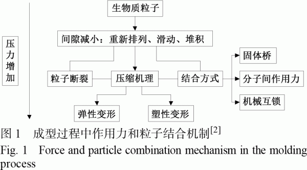 摘要:生物質(zhì)成型燃料因具有清潔、可再生等特點(diǎn),近年來發(fā)展迅速,對(duì)其成型機(jī)理的研究也日趨深入。本文主要介紹成型過程中粒子間“固體橋”結(jié)合方式、木質(zhì)素?zé)徂D(zhuǎn)變特性及黏結(jié)作用、原料組分、成型參數(shù)等方面的研究現(xiàn)狀,提出混配成型技術(shù)、原料熱轉(zhuǎn)變特性、木質(zhì)素結(jié)構(gòu)及種類的影響、“固體橋”結(jié)構(gòu)的構(gòu)建條件及微觀形貌、官能團(tuán)和化學(xué)鍵的變化規(guī)律應(yīng)是成型機(jī)理研究的主要方向,為生物質(zhì)成型機(jī)理的深入研究提供參考。 0前言 生物質(zhì)成型技術(shù)是生物質(zhì)能的有效利用技術(shù)之一,是指在一定的溫度與壓力作用下,將各類分散的、無(wú)一定形狀的農(nóng)林剩余物經(jīng)加工制成有一定形狀、密度較大的各種燃料產(chǎn)品的技術(shù)[1]。成型過程中粒子經(jīng)歷重新排列、機(jī)械變形、塑性流變和密度增大等階段,燃料品質(zhì)同時(shí)受到內(nèi)在原料化學(xué)組成和外在成型參數(shù)的影響[2],作用力和粒子結(jié)合機(jī)制見圖1。本文主要介紹成型過程中粒子結(jié)合方式、木質(zhì)素黏結(jié)作用、原料組分和成型參數(shù)等方面的研究現(xiàn)狀,提出未來研究方向,為生物質(zhì)成型機(jī)理發(fā)展提供參考。